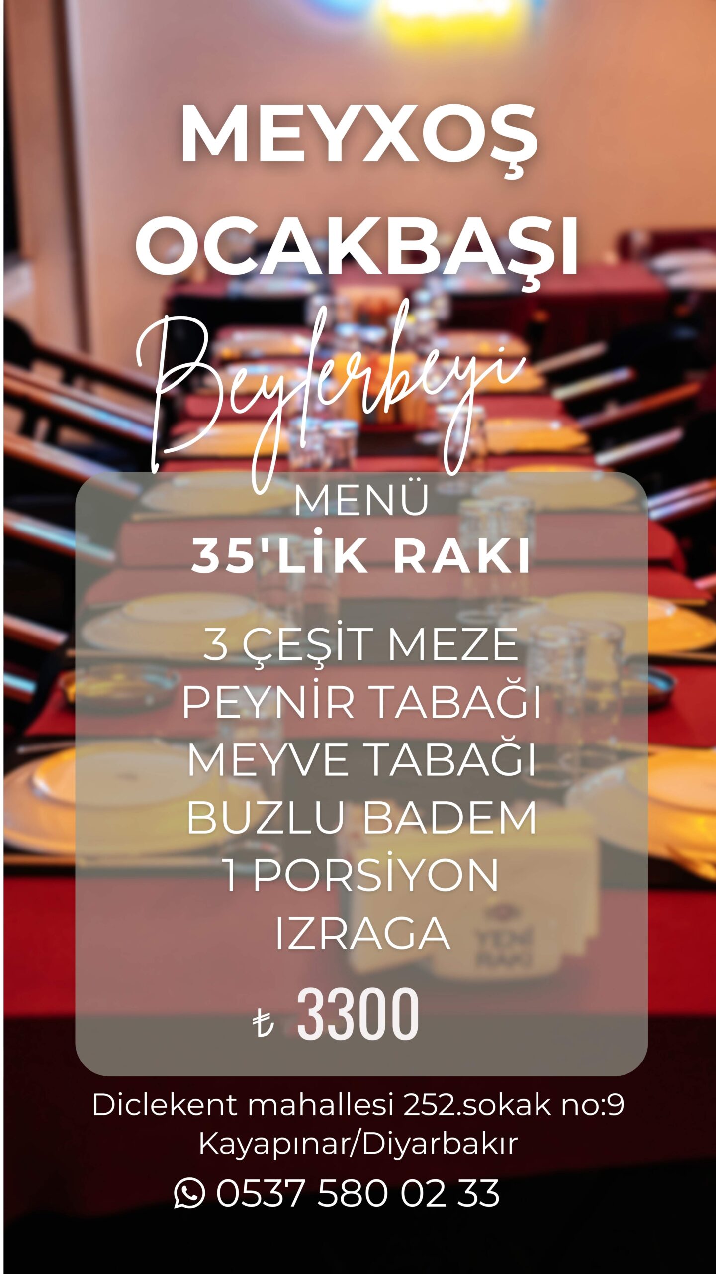 Bizler meyxoş meyhane ailesi olarak Diyarbakır ilimizde en nezih ve aile ortamı içinde en kaliteli ve güzel bir eğlence anlayışı ile en güzel et balık ve mezeler ile siz sevgili misafirlerimiz en iy şekilde ağırlamak istiyoruz.